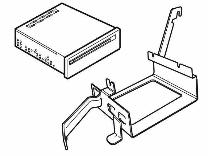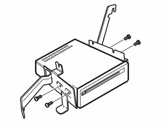 - Take four screws, the bracket and the DVD reader from the kit. Tighten the DVD reader at the bracket.