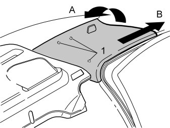 - Grasp the top edge of the C-post panel. Pull (A) the panel inwards until the three clips (1) release