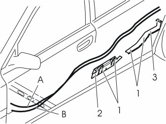- Remove the rubber strip at the rear edge on the left-hand rear door frame