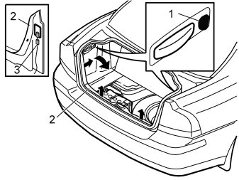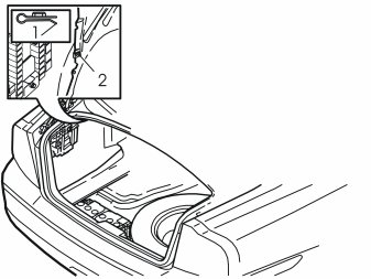 - Pull the tailgate sill trim panel (2) forwards on the right and left-hand sides until the clips on each side release. Pull hard but carefully. The panel is securely positioned