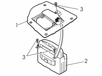 - Install the bracket (1) on the display (2). Use the screws (3) (from the kit).