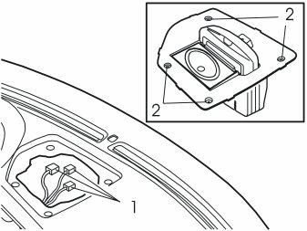 - Connect the three cables (1) to the display screen and the centrally mounted loudspeaker