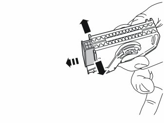 - Carefully pull apart the sides of the holder for the connector at the ends so that the connector can pass by the catches
