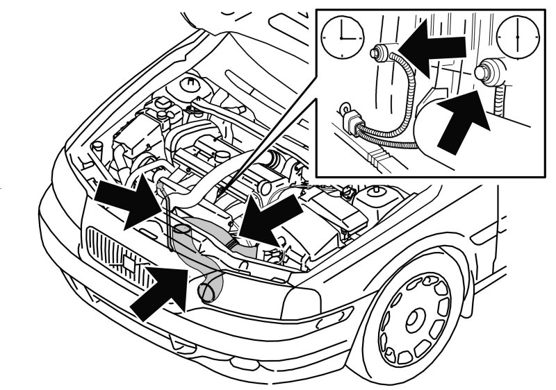 Disconnect the battery negative lead. First read Battery, disconnecting Battery Disconnecting.