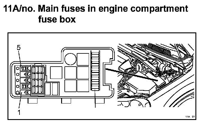 11A/No. Main Fuses In Engine Compartment Fuse Box: