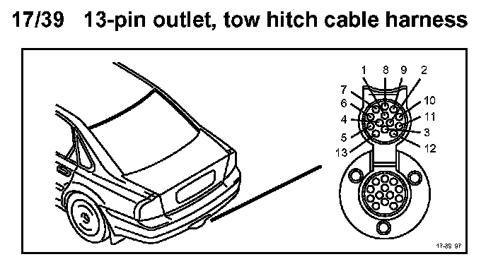 17/39 13-Pin Outlet, Tow Hitch Cable Harness: