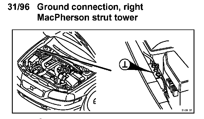 31/96 Ground Connection, Right MacPherson Strut Tower: