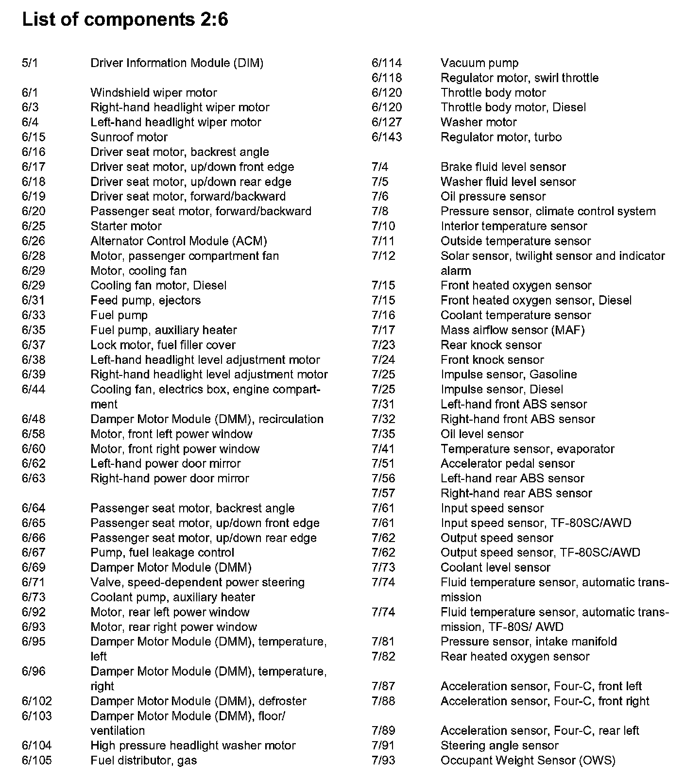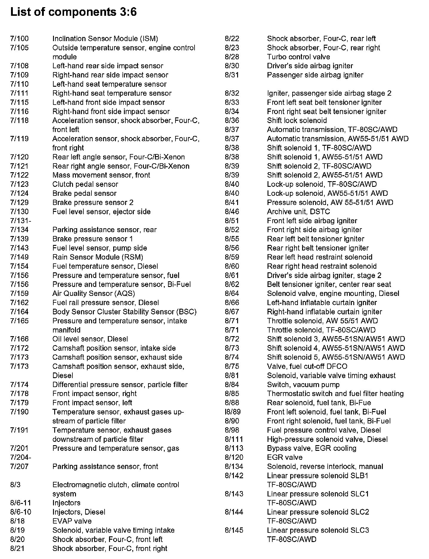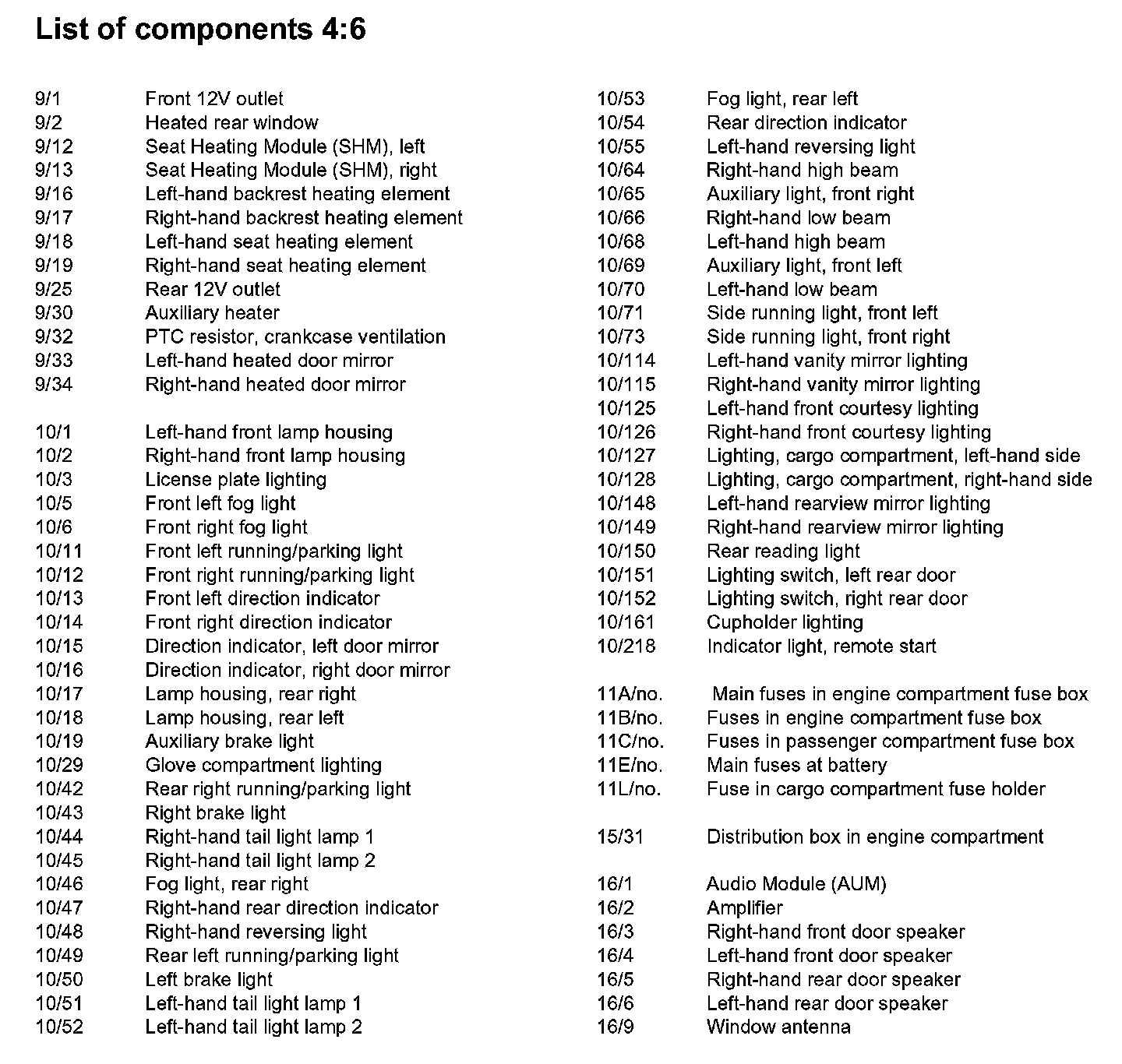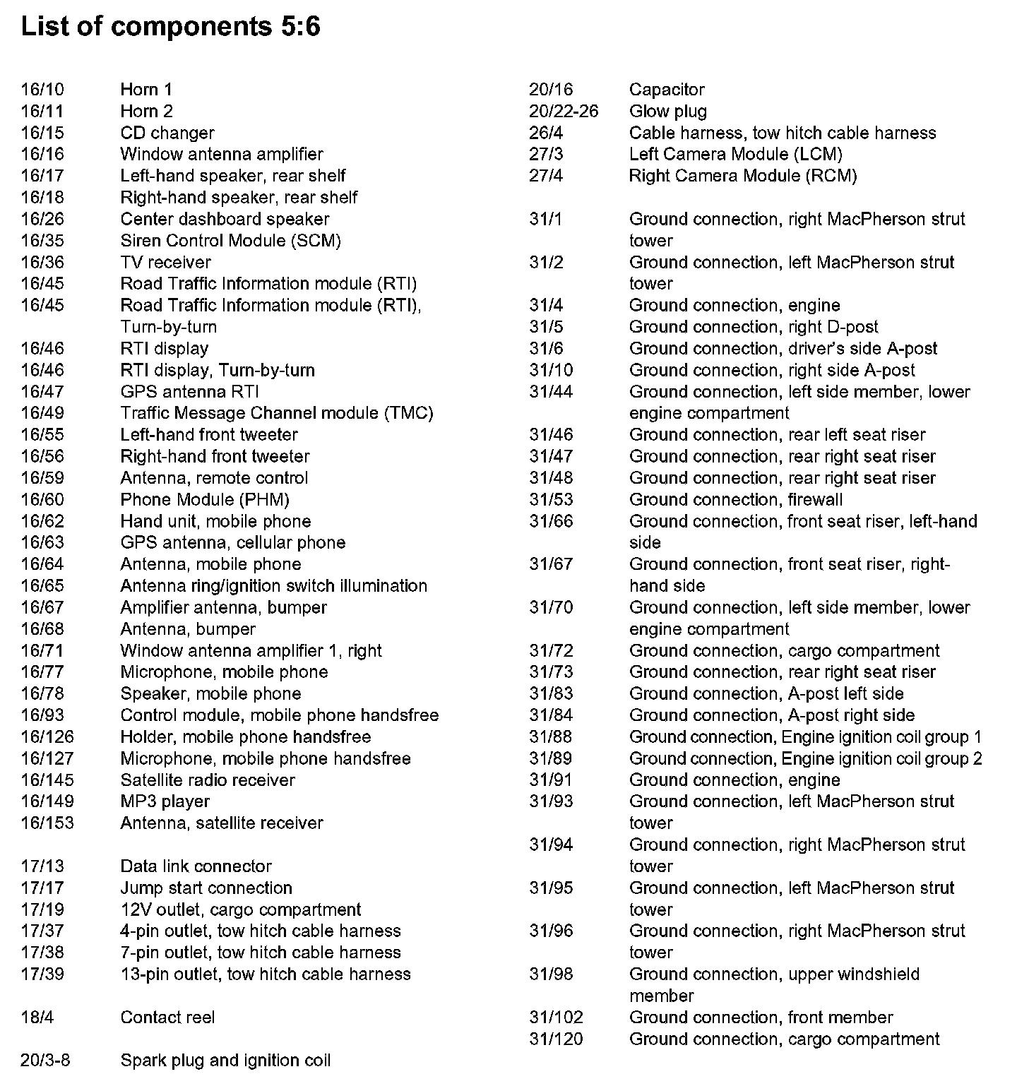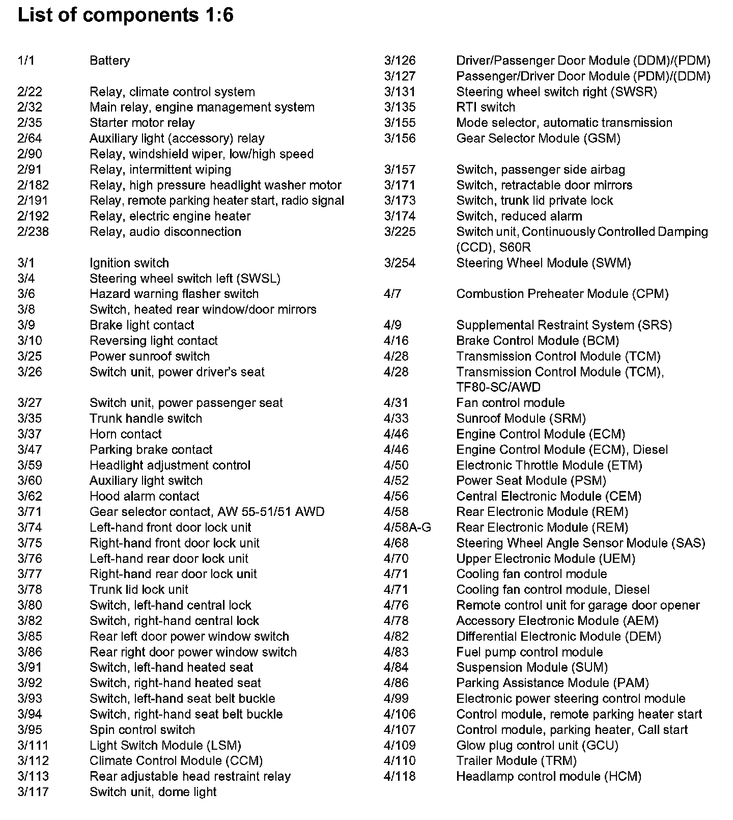 List of Components By Component Number