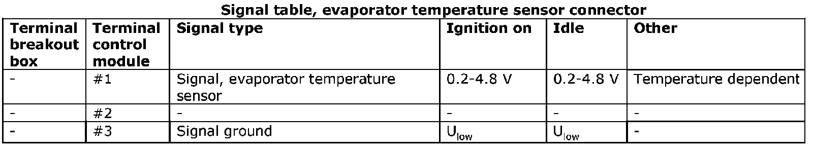 All the values given below are between the terminals stated in column 1 and terminal #A16 in column 2 (signal ground). This applies unless otherwise indicated in brackets.
