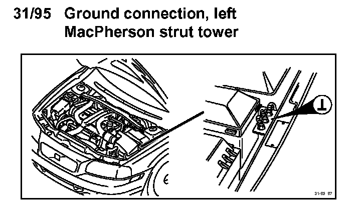 31/95 Ground Connection, Left MacPherson Strut Tower: