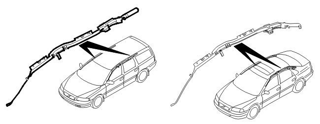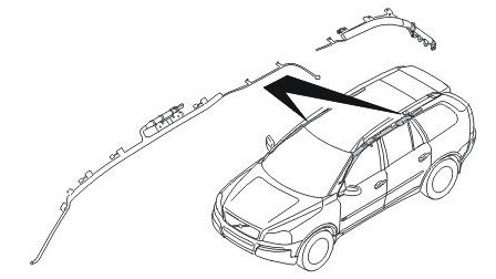 For the 7 seater XC90 models, the inflatable curtains are in the roof between the A and D-posts. For the 5 seater XC90 models and other models, the inflatable curtains are in the roof between the A and C-posts.