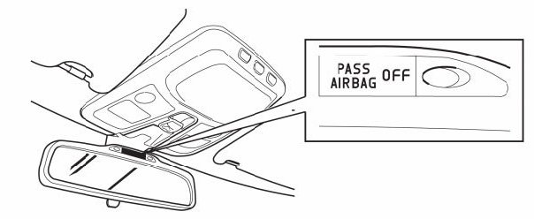 Depending on the market, if the switch for activating and deactivating the front passenger airbag is used to deactivate it, the passenger airbag disconnected (PAD) warning lamp lights. The warning lamp goes out when the airbag is reactivated.