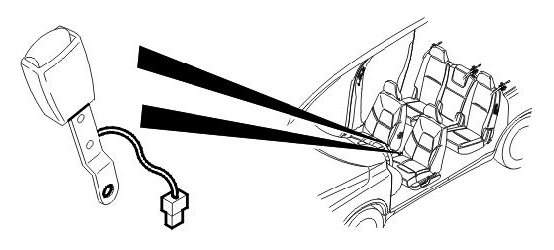 The two front seat belt buckles have Hall sensors and are connected to the SRS module. These connections are electrically separated from each other.