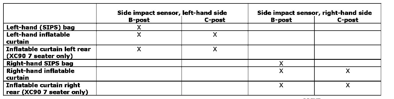 The table below shows how the SRS system reacts in the event of a side impact.