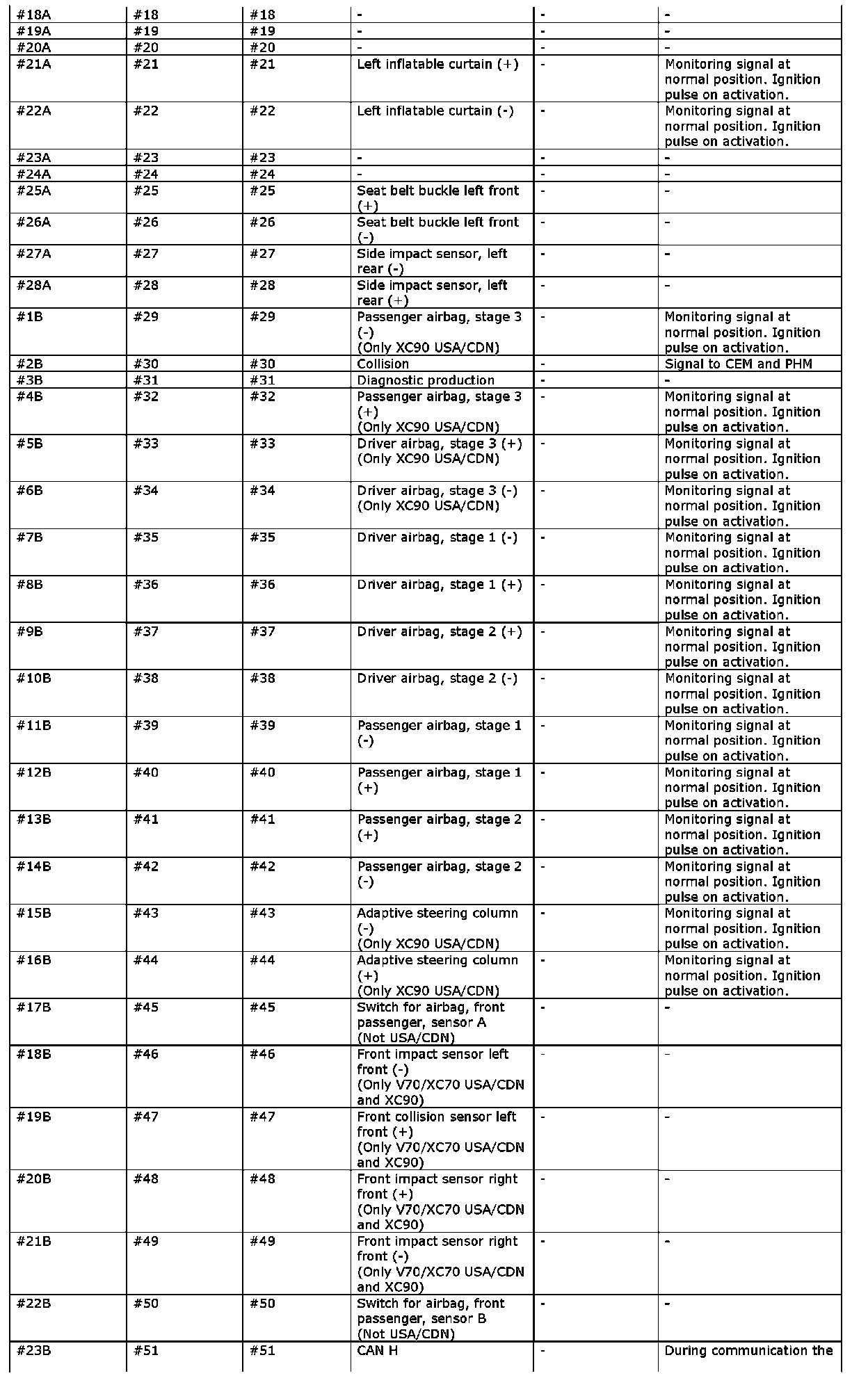 Signal Specification, Supplemental Restraint System Module (SRS)