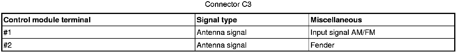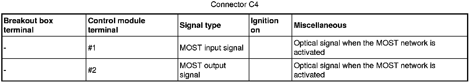 All values below are measured between the relevant terminal in column 1 and C2-8 in column 2 (power ground) unless otherwise stated in parenthesis after the table entry.