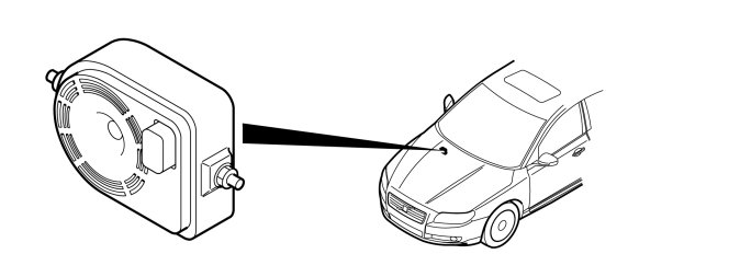 The siren has a battery and a built-in battery charger so that it is independent of the power supply in the car. The battery charger maintains battery voltage in the built-in battery. When the alarm is armed, the power supply for the siren and the serial communication between the siren and the central electronic module (CEM) are monitored. The siren sounds if the car's power supply to the siren is cut off or if communication between the central electronic module (CEM) and the siren is interrupted. The battery and battery charger in the siren cannot be replaced separately. The entire siren must be replaced in the event of a fault.