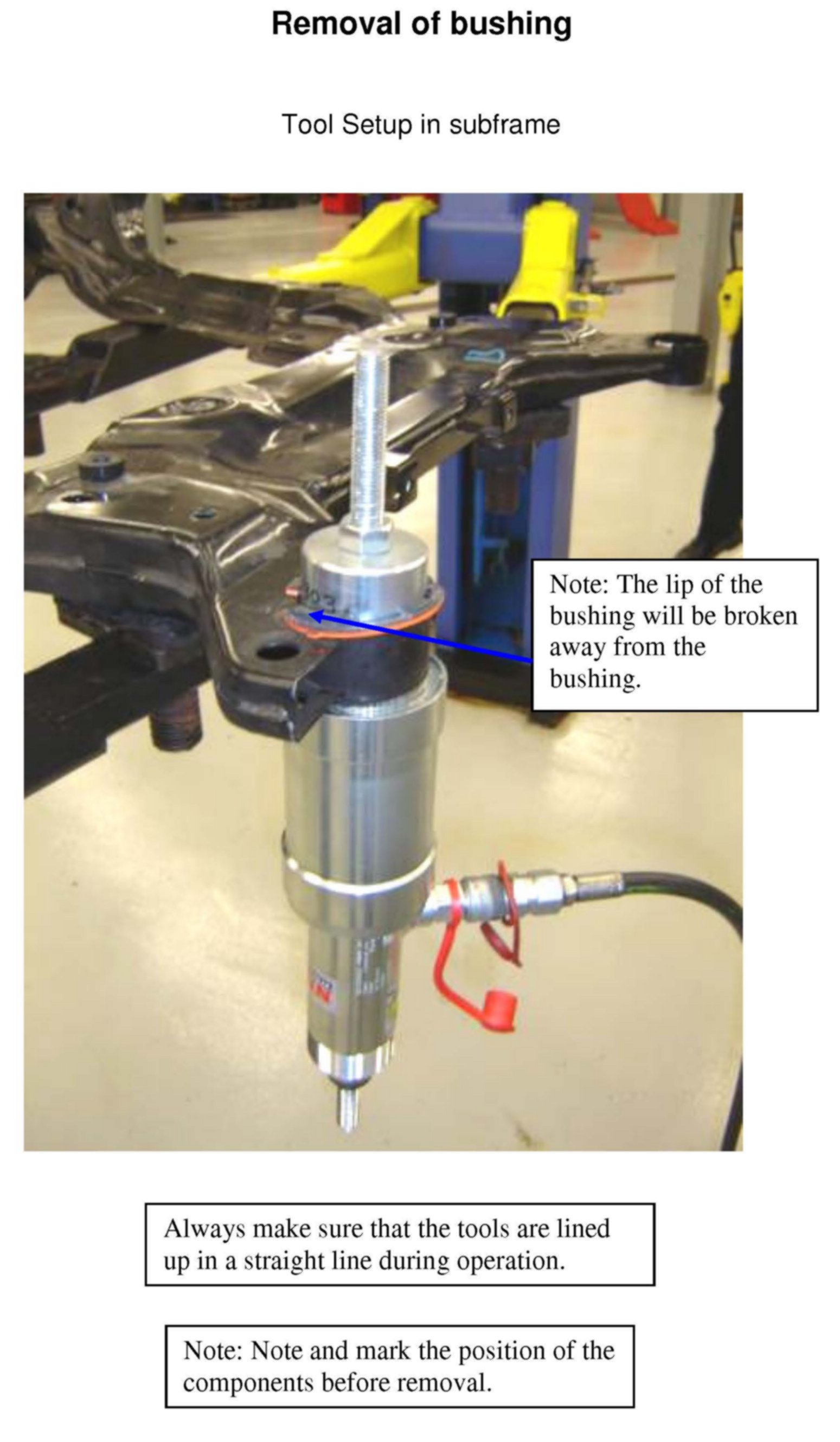 Removal of bushing - Tool Setup in subframe