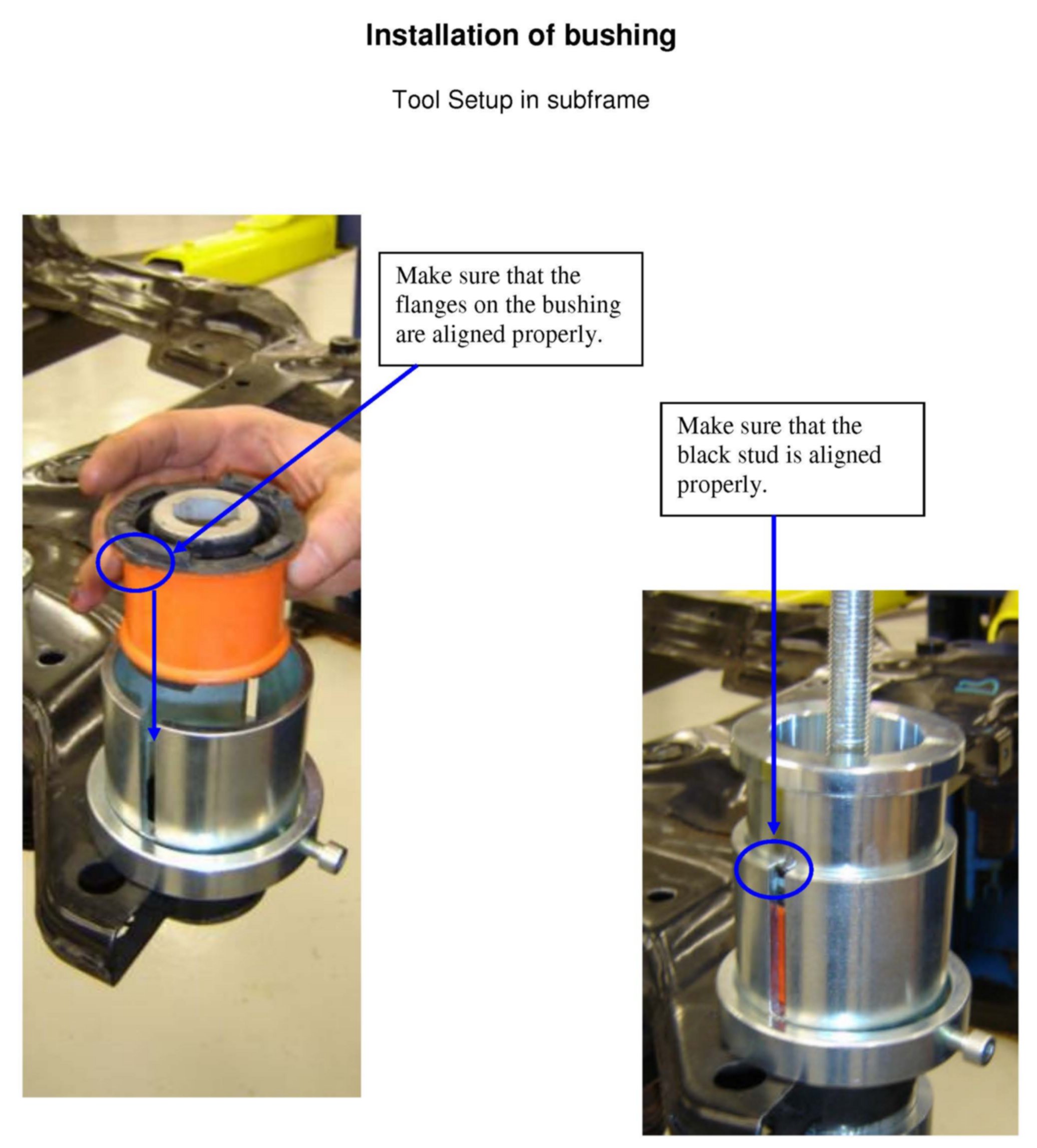 Installation of bushing - Tool Setup in subframe
