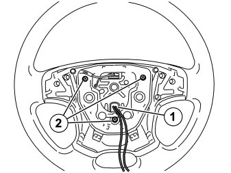 - Remove the three screws (1) and pull out the horn ring slightly so that the connector (2) can be unplugged.