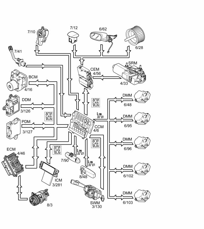 For further information, see Design and Function, driver door module (DDM)/passenger door module (PDM) and Design and Function, central electronic module (CEM).