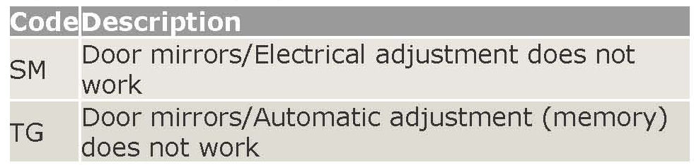 Automatic angling of the door mirror when parking may not work correct. This is due to a SW(software) bug in DDM(drivers door module)/PDM(passenger door module).