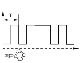 Note! The signal's asymmetrical wave shape depends on the camshaft's teeth.