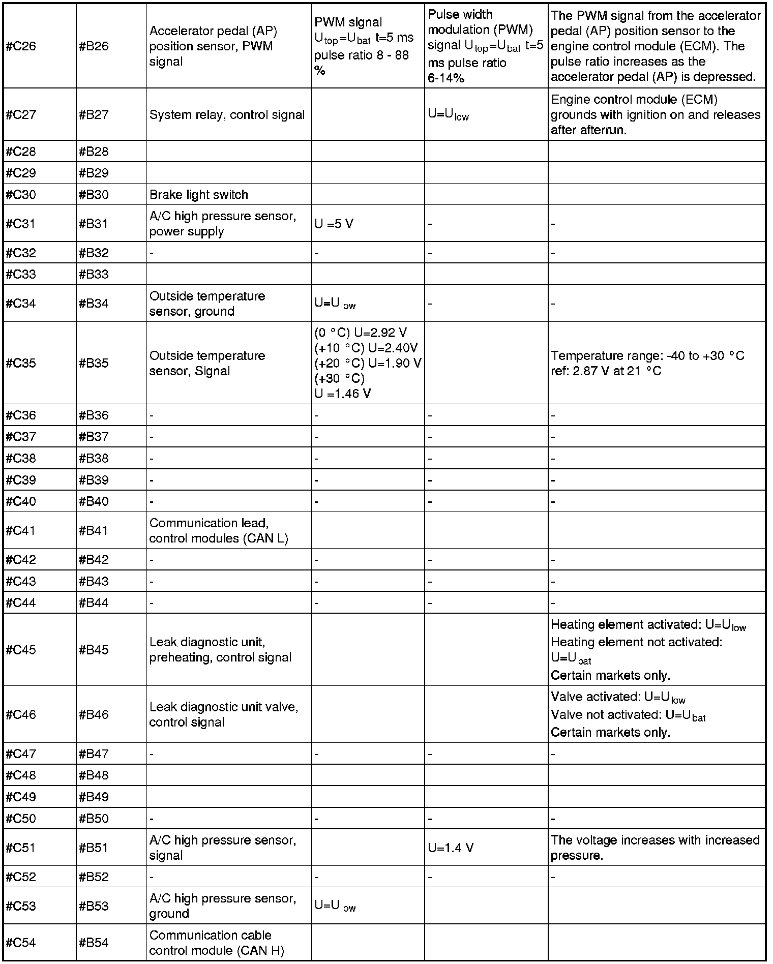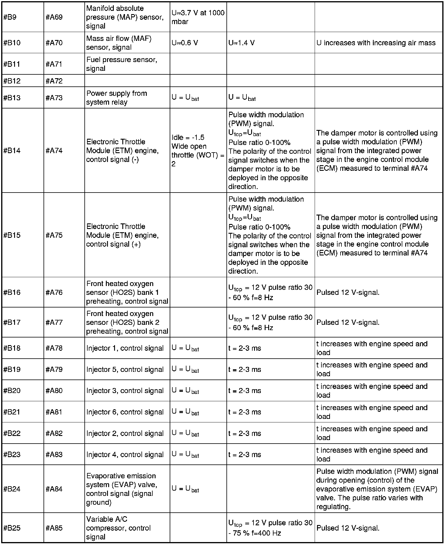 Signal Specification, Engine Control Module (ECM)