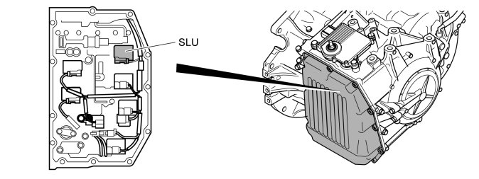 The lock-up solenoid, SLU is located in the transmission control system, which is fitted on the front edge of the gearbox. The lock-up solenoid, SLU consists of an electrical coil which controls a hydraulic valve. The solenoid is controlled with a pulsed (PWM) voltage and is grounded via the Transmission Control Module (TCM). The solenoid controls torque converter lock-up engagement. The engagement takes place by means of the solenoid being pulsed in, which enables a gentle engagement of the lock-up function. The solenoid permits the torque converter to work in one of three positions: "Open", "Controlled slipping" and "Locked". The hydraulic function of the solenoid is linear.