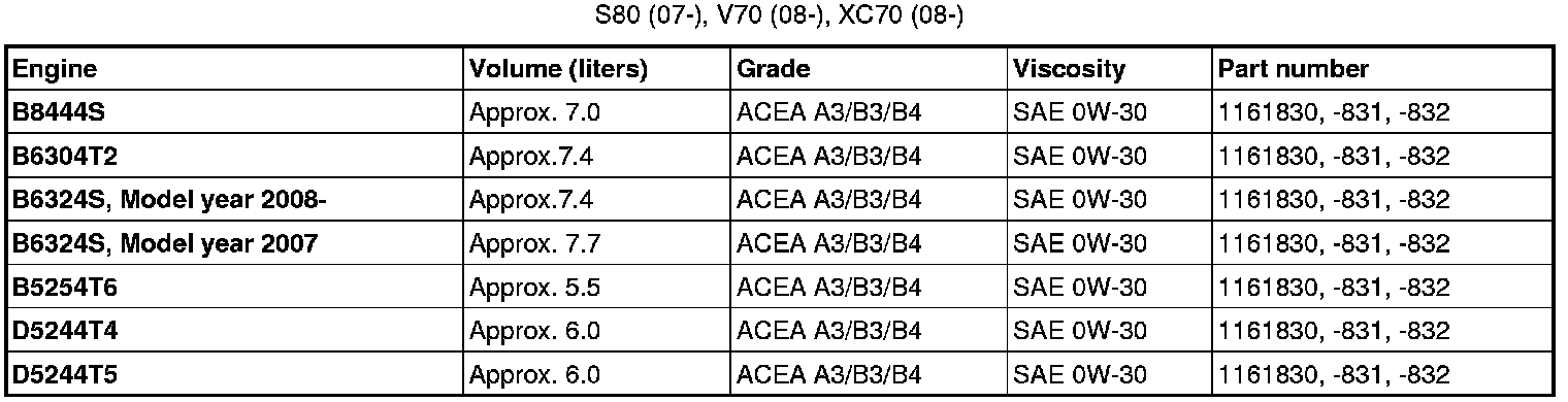 Oil grade ACEA A3/B3/B4 can not be replaced by any other oil other than the one prescribed in the table for engines D5244T, D5244T2 and D5244T3.