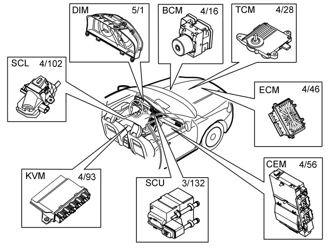 - Keyless vehicle module (KVM) (only vehicles with the keyless locking system)