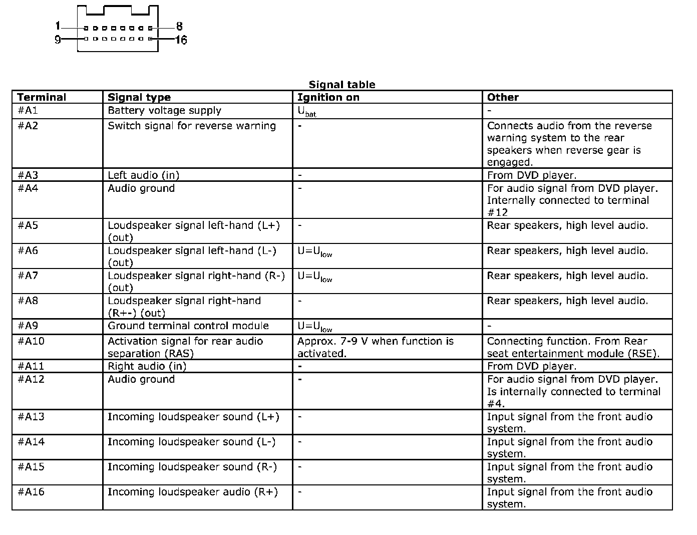 Signal specification, rear sound separation electronic module. Rear seat entertainment, generation 4.1