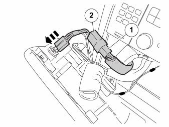 - Take the radio unit and connect the connector (1) that was disconnected from the 12V socket to the female connector (2) in the routed cable.
