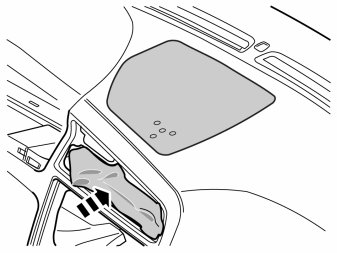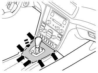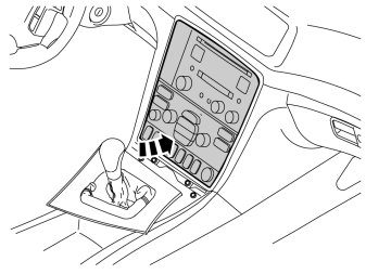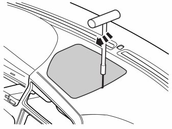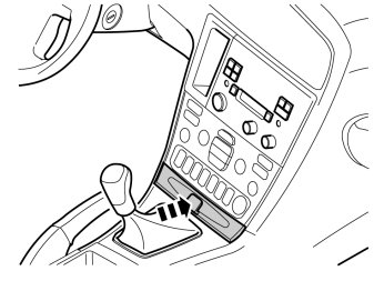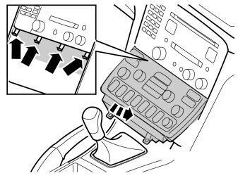 - Insert special tool, 999-5919-46 in the joint between the loudspeaker grille and the dashboard approximately as illustrated, until it engages.