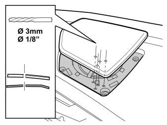 - Predrill the holes according to the template using a -3 mm (1/8") drill bit. Drill at right angles through the speaker grille.