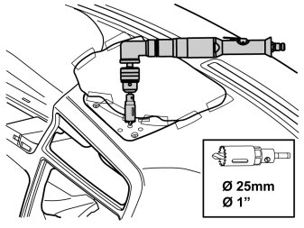 - Drill the corresponding hole in the loudspeaker console using a -25 mm (1") hole saw.