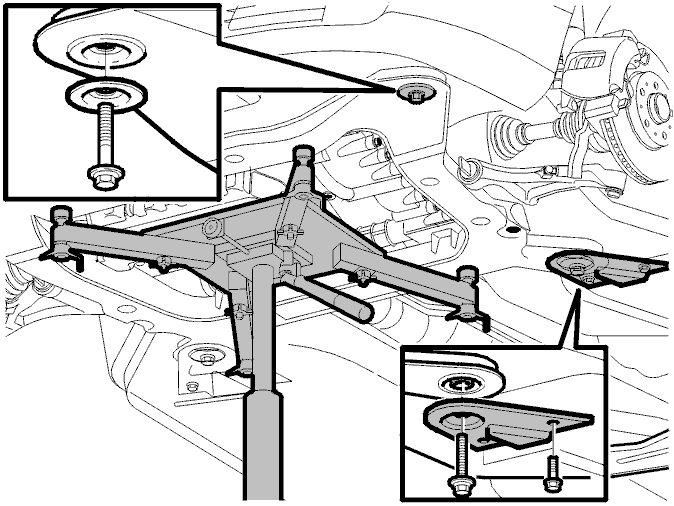Lift up the sub-frame slightly, approximately 50 mm from the car body.