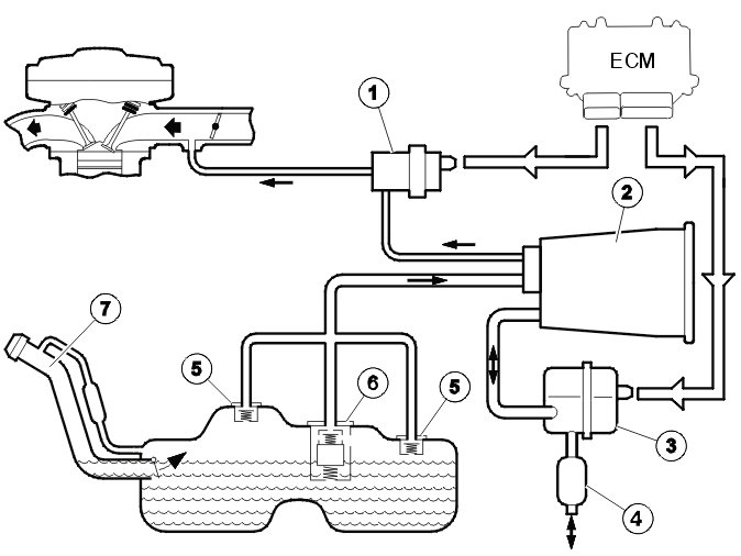 All gases that evaporate from fuel in the fuel tank must be led to and stored in the evaporative emission system (EVAP) canister so that they can be directed into the engine for combustion. In order to detect leakages which cause evaporation of gases into the air, the fuel tank system is diagnosed for leakage. The fuel tank system consists of: