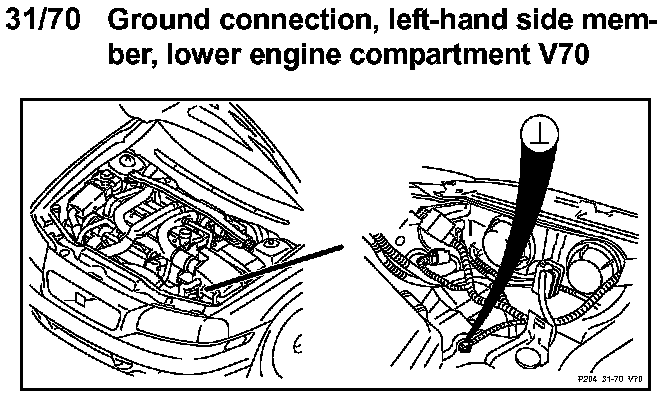 31/70 Ground Connection, Left-hand Side Member, Lower Engine Compartment: