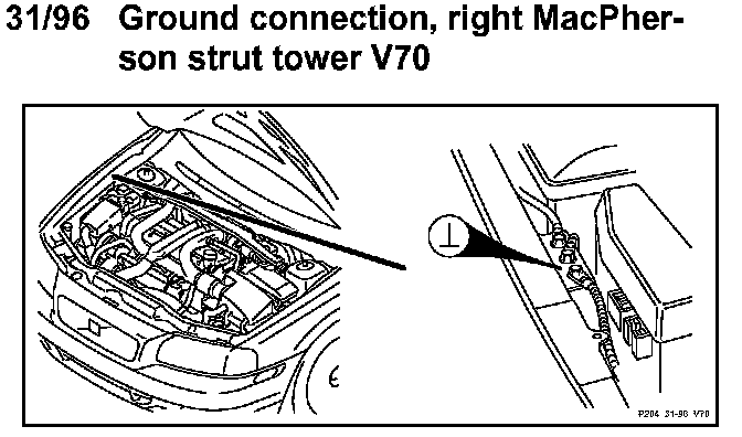 31/96 Ground Connection, Right MacPherson Strut Tower: