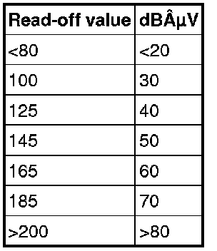 Indicates signal amplitude in the interval 0-255. To obtain corresponding dBµV-value, use the following conversion table.
