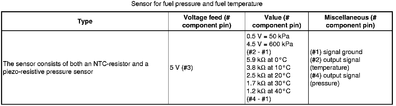 Sensor for fuel pressure and fuel temperature (only for vehicles with demand-controlled fuel pump)