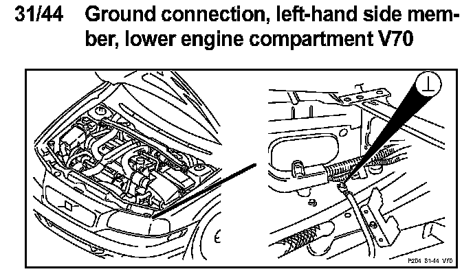 31/44 Ground Connection, Left-Hand Side Member, Lower Engine Compartment: