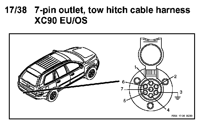 17/38 7-Pin Outlet, Tow Hitch Cable Harness EU/OS
