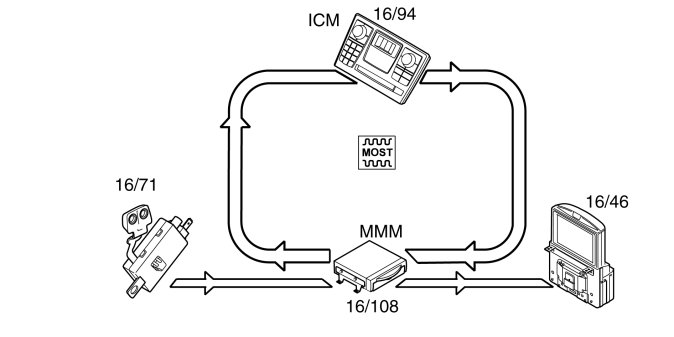 Information from these control modules is sent to the infotainment control module (ICM) (16/94), which then distributes the information to the multimedia module (MMM).