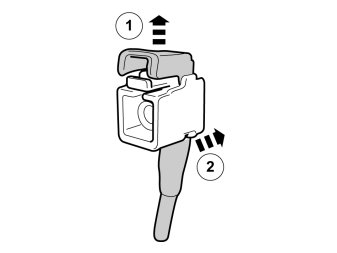 - Carefully pry up and remove the catch in the receptacle housing on the cable terminal for the socket marked 1 for the media player. Use a thin pointed object.