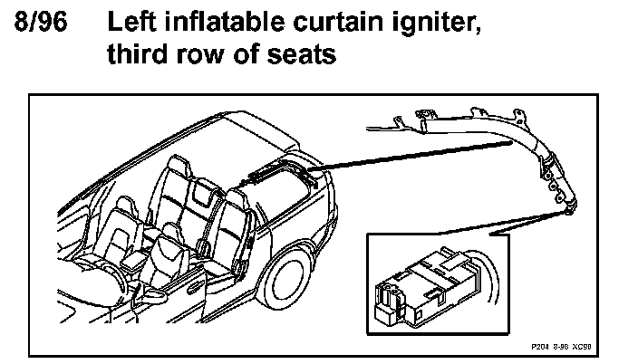8/96 Left Inflatable Curtain Igniter, Third Row of Seats: