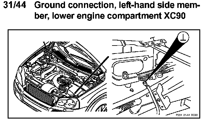 31/44 Ground Connection, Left-Hand Side Member, Lower Engine Compartment: