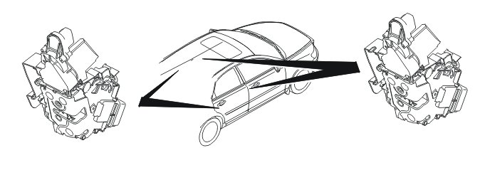 The rear door control modules are directly connected to the lock motor in each door. The door control modules lock and unlock the door on receipt of a command from the front door control module.