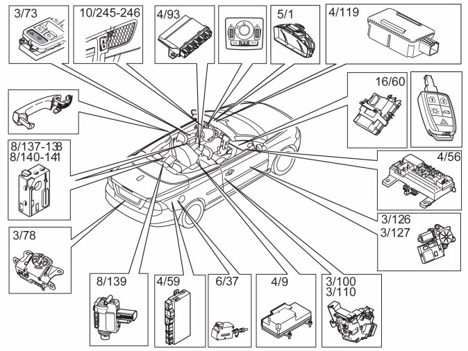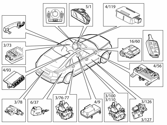 Note! This document describes the central locking system in cars with a keyless vehicle module (KVM). Some components are different from the standard central locking system. This document describes the main functions of the central locking system with keyless entry. For more detailed information about the keyless entry system, see Design and Function, keyless vehicle module (KVM).